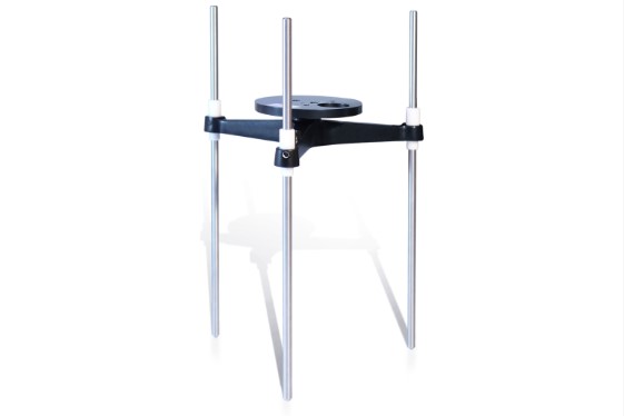 A mounting tripod constructed from aluminium alloy is supported on three stainless steel rods secured by thumbscrews. The rods are adjustable allowing the stand to be made level.
